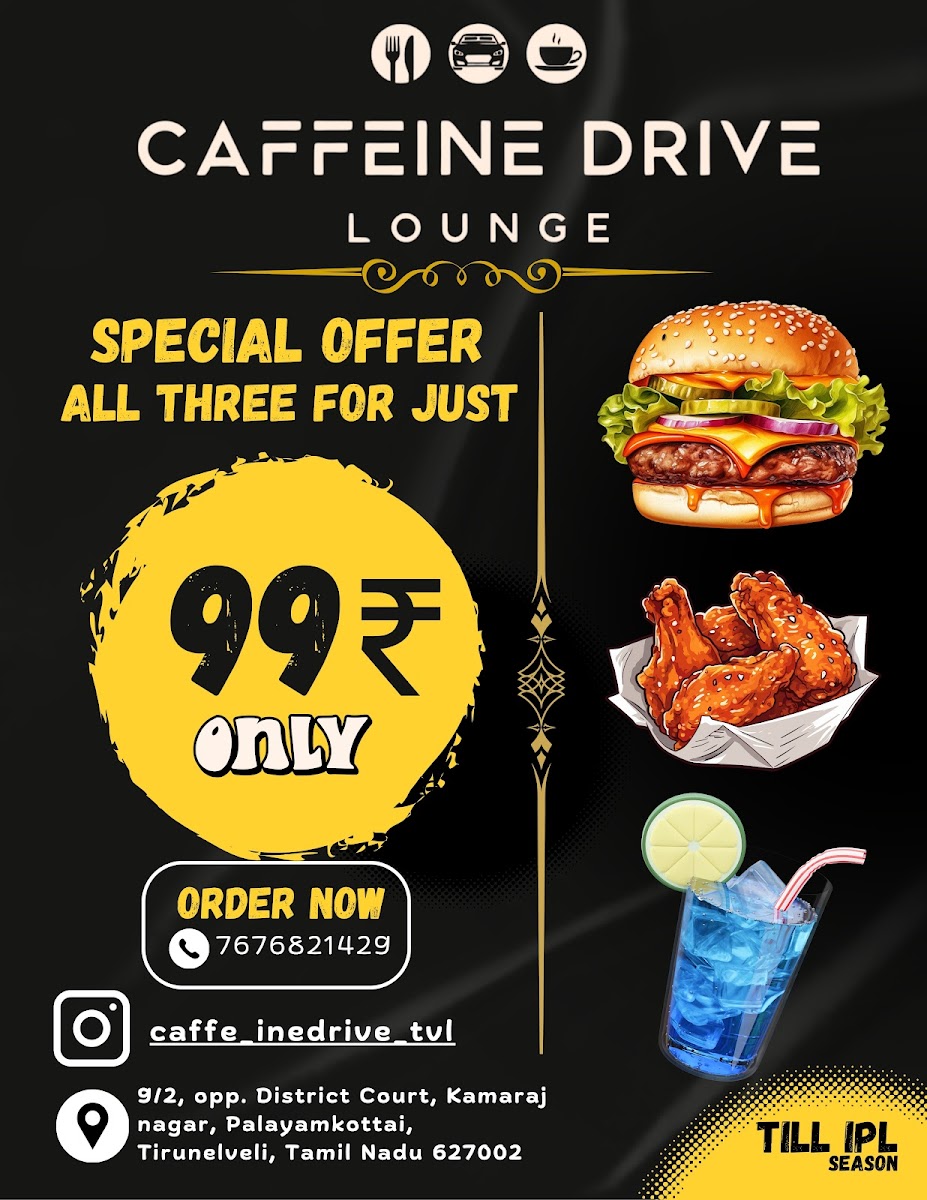 Introducing Caffeine Drive, a vibrant café located in Palayamkottai, Tirunelveli, that promises a delightful experience for food enthusiasts and gamers alike. With an inviting atmosphere, it’s a perfect spot to unwind while indulging in a diverse menu.